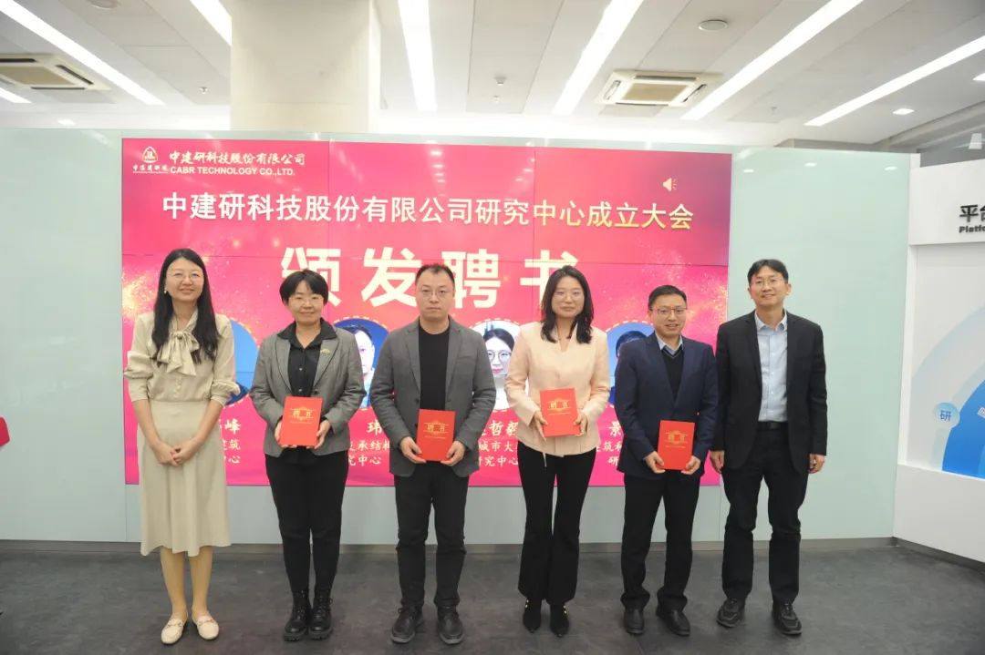 朱愛萍宣讀成立中建研科技研究中心決議。中建研科技共設(shè)立I類研究中心5個,II類研究中心14個。研究中心涵蓋建筑結(jié)構(gòu)、更新與改造、建筑材料與產(chǎn)品、建筑工業(yè)化、建筑智能化、房屋體檢、固廢利用等方向,既覆蓋公司傳統(tǒng)業(yè)務(wù)領(lǐng)域,也為新時代建筑領(lǐng)域的發(fā)展布局籌謀。劉軍進(jìn)、劉楓、程紹革為各研究中心主任頒發(fā)聘書。