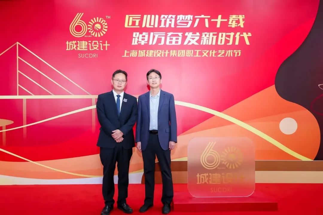 城建設(shè)計集團(tuán)董事長蔣應(yīng)紅(左)與中建研科技董事長劉軍進(jìn)(右)