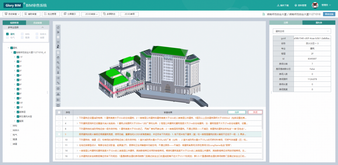 系統(tǒng)中的BIM輔助審查工具軟件,可實(shí)現(xiàn)對(duì)建筑、結(jié)構(gòu)、水、暖、電、人防、消防、節(jié)能及裝配式等專業(yè)的三維輔助審查,并可實(shí)現(xiàn)對(duì)建筑消防及結(jié)構(gòu)專業(yè)的BIM智能審查,審查范圍包含了以上專業(yè)的幾十本常用規(guī)范,審查意見(jiàn)經(jīng)編輯后可添加至批注管理系統(tǒng),自動(dòng)生成審查報(bào)告。