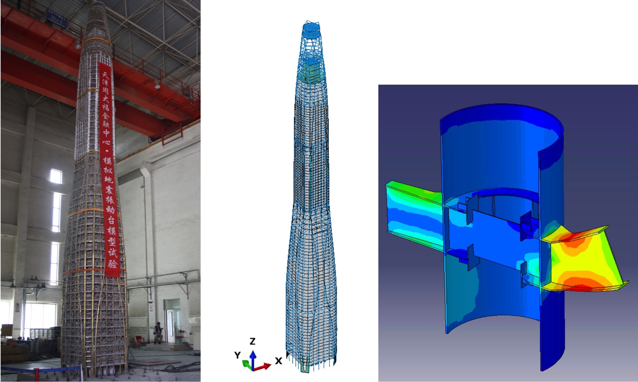 作為國內(nèi)建筑業(yè)科技發(fā)展的引領(lǐng)者,建研科技在全專業(yè)建筑設(shè)計(jì)與咨詢綜合解決方案方面具有豐富的經(jīng)驗(yàn),承擔(dān)了天津周大福金融中心的多項(xiàng)高難度技術(shù)服務(wù)和咨詢工作,為項(xiàng)目的順利實(shí)施提供了技術(shù)支撐:開展了主塔樓的模擬地震振動(dòng)臺(tái)模型試驗(yàn),檢驗(yàn)結(jié)構(gòu)的抗震性能,確保了主塔的抗震安全性;完成了主塔樓的獨(dú)立第三方動(dòng)力彈塑性分析復(fù)核計(jì)算,尋找結(jié)構(gòu)的薄弱層或薄弱部位,為結(jié)構(gòu)抗震設(shè)計(jì)提供改進(jìn)建議;通過有限元分析手段,對(duì)受力不利構(gòu)件進(jìn)行復(fù)雜節(jié)點(diǎn)內(nèi)力分析及節(jié)點(diǎn)抗震性能驗(yàn)算;對(duì)施工圖中涉及的復(fù)雜構(gòu)造要求、特殊做法試驗(yàn)方案、設(shè)計(jì)變更審核等內(nèi)容進(jìn)行了施工圖獨(dú)立第三方結(jié)構(gòu)審計(jì)和顧問工作。