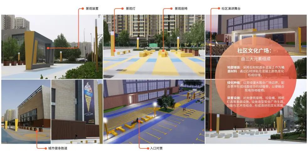 重新規(guī)劃廣場,結(jié)合場地現(xiàn)狀,通過鋪裝設(shè)計(jì)、綠化提升、設(shè)施補(bǔ)齊,面向周邊居民提供室外休閑活動場地。以最少的代價完成空間再造。