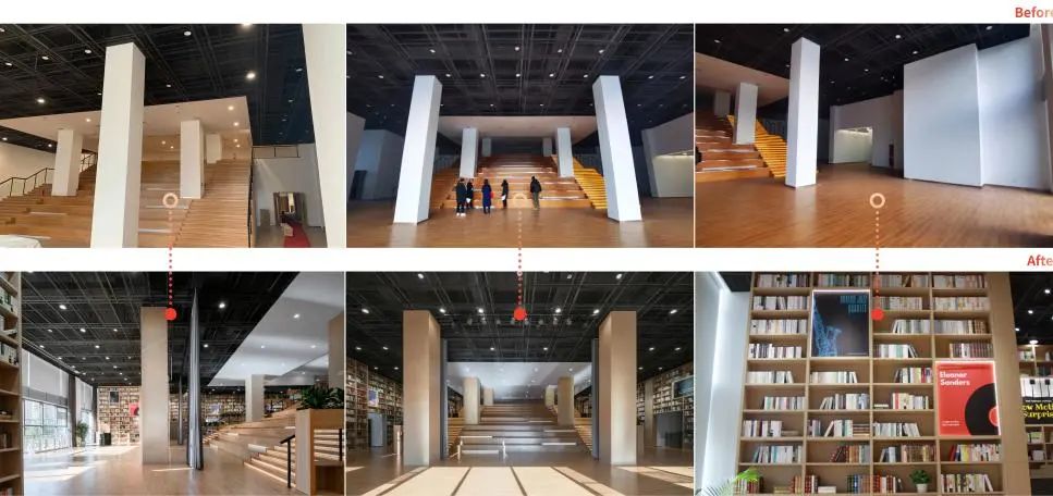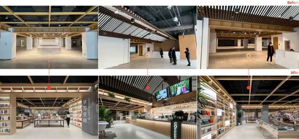 尊重原場地設(shè)計(jì),進(jìn)行了多層次、多頻率的漸進(jìn)式微更新。更新的方式不只是傳統(tǒng)的土建裝飾,通過軟文化多層次置入,以較少的代價改變原有空間的屬性,創(chuàng)造新的內(nèi)容運(yùn)營平臺。為居民打造“美學(xué)生活方式提案平臺”一個家門口的遠(yuǎn)方。